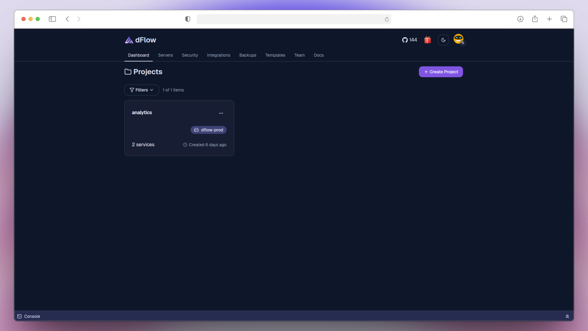 A Project in dFlow is a container for your services. Projects help you organize and manage everything related to a specific app or environment in one place.